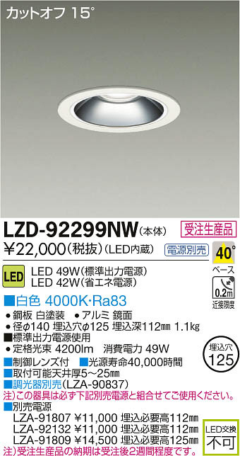 ¢£À©¸æ¥ì¥ó¥ºÉÕ|¢£¸÷¸»¼÷Ì¿40¡¤000»þ´Ö|¢£¼èÉÕ²Äǽŷ°æ¸ü5¡Á25mm|¢£Ä´¸÷´ïÊÌÇä¡ÊLZA-90837¡Ë|Ãí¡Ë¤³¤Î´ï¶ñ¤Ïɬ¤º²¼µÊÌÇäÅŸ»¤ÈÁȹ礻¤Æ¤´»ÈÍѤ¯¤À¤µ¤¤¡£|¢£ÊÌÇäÅŸ»¡¡LZA-91807 ¡ï11¡¤000 Ëä¹þɬÍ×¹â112mm LZA-92132 ¡ï11¡¤000 Ëä¹þɬÍ×¹â112mm LZA-91809 ¡ï14¡¤500 Ëä¹þɬÍ×¹â125mm|Ãí¡Ë¼õÃíÀ¸»ºÉʤÎǼ´ü¤Ï¼õÃí¸å£²½µ´ÖÄøÅ٤Ǥ¹¡£|¢£É¸½à½ÐÎÏÅŸ»»ÈÍÑ»þ¡¡Äê³Ê¸÷« 4200lm¡¡¾ÃÈñÅÅÎÏ 49W|Ra83