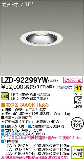 ¢£À©¸æ¥ì¥ó¥ºÉÕ|¢£¸÷¸»¼÷Ì¿40¡¤000»þ´Ö|¢£¼èÉÕ²Äǽŷ°æ¸ü5¡Á25mm|¢£Ä´¸÷´ïÊÌÇä¡ÊLZA-90837¡Ë|Ãí¡Ë¤³¤Î´ï¶ñ¤Ïɬ¤º²¼µÊÌÇäÅŸ»¤ÈÁȹ礻¤Æ¤´»ÈÍѤ¯¤À¤µ¤¤¡£|¢£ÊÌÇäÅŸ»¡¡LZA-91807 ¡ï11¡¤000 Ëä¹þɬÍ×¹â112mm LZA-92132 ¡ï11¡¤000 Ëä¹þɬÍ×¹â112mm LZA-91809 ¡ï14¡¤500 Ëä¹þɬÍ×¹â125mm|Ãí¡Ë¼õÃíÀ¸»ºÉʤÎǼ´ü¤Ï¼õÃí¸å£²½µ´ÖÄøÅ٤Ǥ¹¡£|¢£É¸½à½ÐÎÏÅŸ»»ÈÍÑ»þ¡¡Äê³Ê¸÷« 4010lm¡¡¾ÃÈñÅÅÎÏ 49W|Ra83
