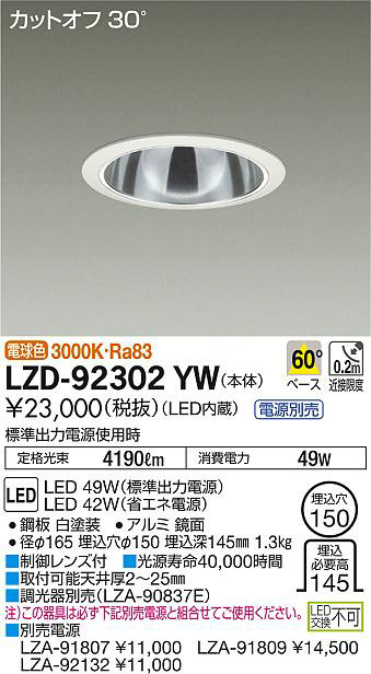 ¢£ÊÌÇäÅŸ»¡¡LZA-91807 ¡ï11¡¤000¡¡LZA-91809 ¡ï14¡¤500¡¡LZA-92132 ¡ï11¡¤000¡¢É¸½à½ÐÎÏÅŸ»»ÈÍÑ»þ Äê³Ê¸÷« 4190lm ¾ÃÈñÅÅÎÏ 49W¡¢Ra83