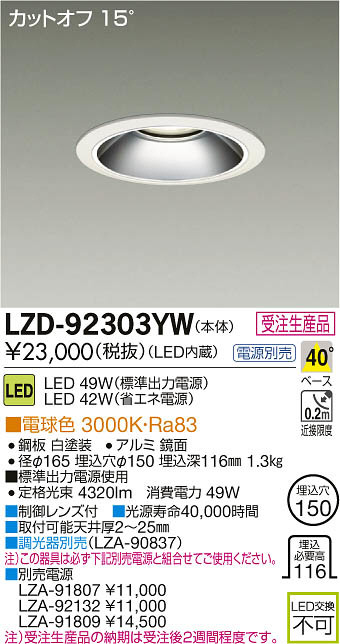 ¢£À©¸æ¥ì¥ó¥ºÉÕ|¢£¸÷¸»¼÷Ì¿40¡¤000»þ´Ö|¢£¼èÉÕ²Äǽŷ°æ¸ü2¡Á25mm|¢£Ä´¸÷´ïÊÌÇä¡ÊLZA-90837¡Ë|Ãí¡Ë¤³¤Î´ï¶ñ¤Ïɬ¤º²¼µÊÌÇäÅŸ»¤ÈÁȹ礻¤Æ¤´»ÈÍѤ¯¤À¤µ¤¤¡£|¢£ÊÌÇäÅŸ»¡¡LZA-91807 ¡ï11¡¤000 LZA-91809 ¡ï14¡¤500 LZA-92132 ¡ï11¡¤000|Ãí¡Ë¼õÃíÀ¸»ºÉʤÎǼ´ü¤Ï¼õÃí¸å£²½µ´ÖÄøÅ٤Ǥ¹¡£|¢£É¸½à½ÐÎÏÅŸ»»ÈÍÑ»þ¡¡Äê³Ê¸÷« 4320lm¡¡¾ÃÈñÅÅÎÏ 49W|Ra83