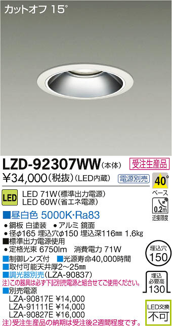 ¢£À©¸æ¥ì¥ó¥ºÉÕ|¢£¸÷¸»¼÷Ì¿40¡¤000»þ´Ö|¢£¼èÉÕ²Äǽŷ°æ¸ü2¡Á25mm|¢£Ä´¸÷´ïÊÌÇä¡ÊLZA-90837¡Ë|Ãí¡Ë¤³¤Î´ï¶ñ¤Ïɬ¤º²¼µÊÌÇäÅŸ»¤ÈÁȹ礻¤Æ¤´»ÈÍѤ¯¤À¤µ¤¤¡£|¢£ÊÌÇäÅŸ»¡¡LZA-90817E ¡ï14¡¤000 LZA-90827E ¡ï16¡¤000 LZA-91111E ¡ï14¡¤000|Ãí¡Ë¼õÃíÀ¸»ºÉʤÎǼ´ü¤Ï¼õÃí¸å£²½µ´ÖÄøÅ٤Ǥ¹¡£|¢£É¸½à½ÐÎÏÅŸ»»ÈÍÑ»þ¡¡Äê³Ê¸÷« 6750lm¡¡¾ÃÈñÅÅÎÏ 71W|Ra83