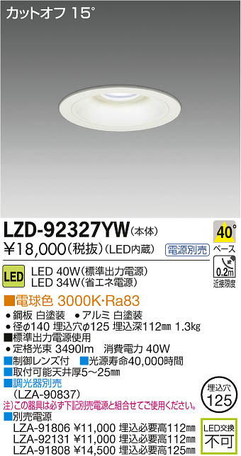 ¢£À©¸æ¥ì¥ó¥ºÉÕ|¢£¸÷¸»¼÷Ì¿40¡¤000»þ´Ö|¢£¼èÉÕ²Äǽŷ°æ¸ü5¡Á25mm|¢£Ä´¸÷´ïÊÌÇä¡ÊLZA-90837¡Ë|Ãí¡Ë¤³¤Î´ï¶ñ¤Ïɬ¤º²¼µÊÌÇäÅŸ»¤ÈÁȹ礻¤Æ¤´»ÈÍѤ¯¤À¤µ¤¤¡£|¢£ÊÌÇäÅŸ»¡¡LZA-91806 ¡ï11¡¤000 Ëä¹þɬÍ×¹â112mm LZA-92131 ¡ï11¡¤000 Ëä¹þɬÍ×¹â112mm LZA-91808 ¡ï14¡¤500 Ëä¹þɬÍ×¹â125mm|¢£É¸½à½ÐÎÏÅŸ»»ÈÍÑ»þ¡¡Äê³Ê¸÷« 3490lm¡¡¾ÃÈñÅÅÎÏ 40W|Ra83