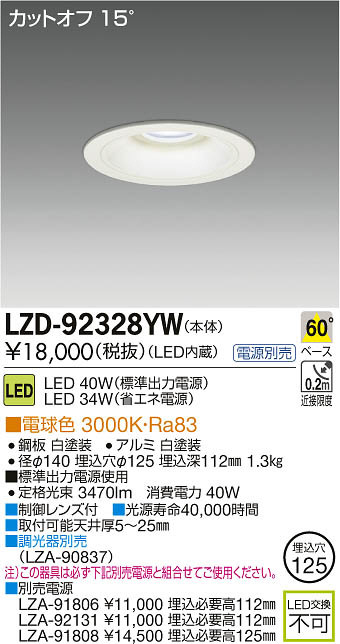 ¢£À©¸æ¥ì¥ó¥ºÉÕ|¢£¸÷¸»¼÷Ì¿40¡¤000»þ´Ö|¢£¼èÉÕ²Äǽŷ°æ¸ü5¡Á25mm|¢£Ä´¸÷´ïÊÌÇä¡ÊLZA-90837¡Ë|Ãí¡Ë¤³¤Î´ï¶ñ¤Ïɬ¤º²¼µÊÌÇäÅŸ»¤ÈÁȹ礻¤Æ¤´»ÈÍѤ¯¤À¤µ¤¤¡£|¢£ÊÌÇäÅŸ»¡¡LZA-91806 ¡ï11¡¤000 Ëä¹þɬÍ×¹â112mm LZA-92131 ¡ï11¡¤000 Ëä¹þɬÍ×¹â112mm LZA-91808 ¡ï14¡¤500 Ëä¹þɬÍ×¹â125mm|¢£É¸½à½ÐÎÏÅŸ»»ÈÍÑ»þ¡¡Äê³Ê¸÷« 3470lm¡¡¾ÃÈñÅÅÎÏ 40W|Ra83