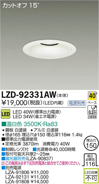 ¢£À©¸æ¥ì¥ó¥ºÉÕ|¢£¸÷¸»¼÷Ì¿40¡¤000»þ´Ö|¢£¼èÉÕ²Äǽŷ°æ¸ü2¡Á25mm|¢£Ä´¸÷´ïÊÌÇä¡ÊLZA-90837¡Ë|Ãí¡Ë¤³¤Î´ï¶ñ¤Ïɬ¤º²¼µÊÌÇäÅŸ»¤ÈÁȹ礻¤Æ¤´»ÈÍѤ¯¤À¤µ¤¤¡£|¢£ÊÌÇäÅŸ»¡¡LZA-91806 ¡ï11¡¤000 LZA-92131 ¡ï11¡¤000 LZA-91808 ¡ï14¡¤500|¢£É¸½à½ÐÎÏÅŸ»»ÈÍÑ»þ¡¡Äê³Ê¸÷« 3870lm¡¡¾ÃÈñÅÅÎÏ 40W|Ra83