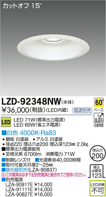 ¢£À©¸æ¥ì¥ó¥ºÉÕ|¢£¸÷¸»¼÷Ì¿40¡¤000»þ´Ö|¢£¼èÉÕ²Äǽŷ°æ¸ü2¡Á25mm|¢£Ä´¸÷´ïÊÌÇä¡ÊLZA-90837¡Ë|Ãí¡Ë¤³¤Î´ï¶ñ¤Ïɬ¤º²¼µÊÌÇäÅŸ»¤ÈÁȹ礻¤Æ¤´»ÈÍѤ¯¤À¤µ¤¤¡£|¢£ÊÌÇäÅŸ»¡¡LZA-90817E ¡ï14¡¤000 LZA-91111E ¡ï14¡¤000 LZA-90827E ¡ï16¡¤000|¢£É¸½à½ÐÎÏÅŸ»»ÈÍÑ»þ¡¡Äê³Ê¸÷« 6700lm¡¡¾ÃÈñÅÅÎÏ 71W|Ra83