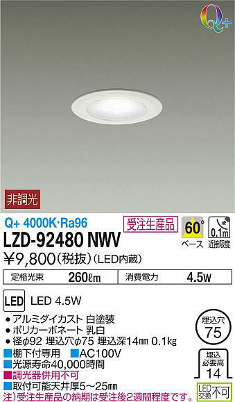 DAIKO Âç¸÷Åŵ¡ ¥À¥¦¥ó¥é¥¤¥È LZD-92480NWV