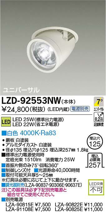 ¢£¼ó¿¶ÊÒ¦¤Î¤ß75¡ë¡¦²óž360¡ë|¢£À©¸æ¥ì¥ó¥ºÉÕ|¢£¸÷¸»¼÷Ì¿40¡¤000»þ´Ö|¢£¼èÉÕ²Äǽŷ°æ¸ü5¡Á25mm|¢¨Åô¶ñ¤ÏɬÍפ˱þ¤¸¤Æ¾å²¼¤Ëư¤«¤»¤Þ¤¹¡£|¢£Ä´¸÷´ïÊÌÇä¡ÊLZA-90837¡¦90306E¡¦90637E¡Ë|Ãí¡Ë¤³¤Î´ï¶ñ¤Ïɬ¤º²¼µÊÌÇäÅŸ»¤ÈÁȹ礻¤Æ¤´»ÈÍѤ¯¤À¤µ¤¤¡£|¢£ÊÌÇäÅŸ»¡¡LZA-90815E ¡ï7¡¤500 LZA-90822E ¡ï11¡¤000 LZA-91108E ¡ï7¡¤500 LZA-90825E ¡ï11¡¤000|¢£É¸½à½ÐÎÏÅŸ»»ÈÍÑ»þ¡¡Äê³Ê¸÷« 1510lm¡¡¾ÃÈñÅÅÎÏ 25W
