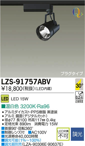 DAIKO Âç¸÷Åŵ¡ LED¥¹¥Ý¥Ã¥È¥é¥¤¥È LZS-91757ABV
