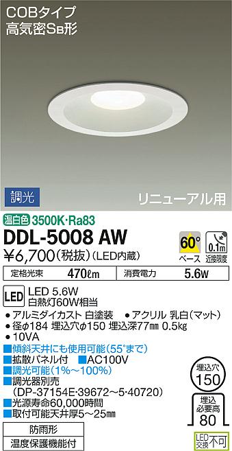 DAIKO Âç¸÷Åŵ¡ ¥À¥¦¥ó¥é¥¤¥È(¸®²¼·óÍÑ) DDL-5008AW