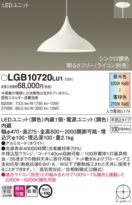 Panasonic ¥Ú¥ó¥À¥ó¥È¥é¥¤¥È LGB10720LU1