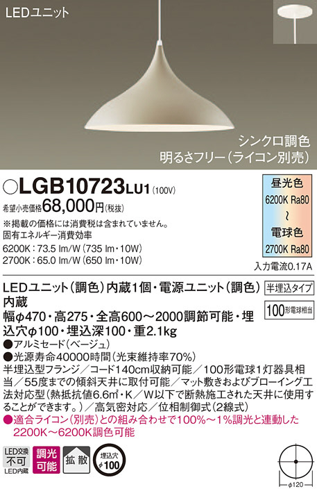 Panasonic ¥Ú¥ó¥À¥ó¥È¥é¥¤¥È LGB10723LU1