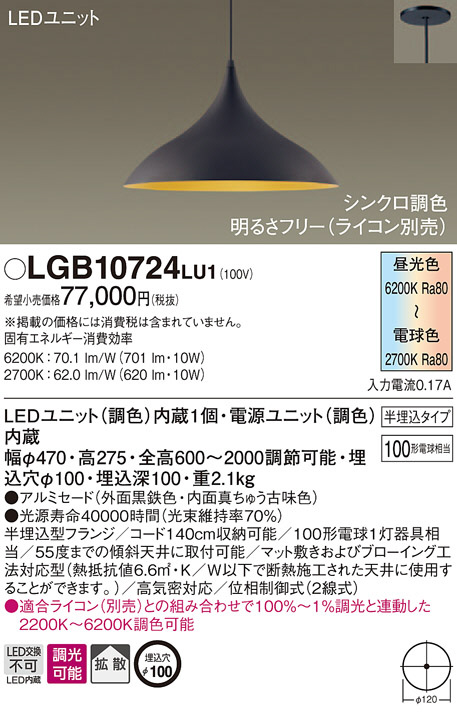 Panasonic ¥Ú¥ó¥À¥ó¥È¥é¥¤¥È LGB10724LU1
