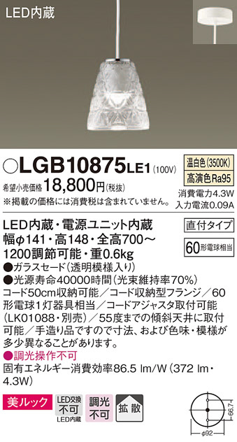 Panasonic ¥Ú¥ó¥À¥ó¥È LGB10875LE1