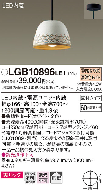 Panasonic ¥Ú¥ó¥À¥ó¥È LGB10896LE1