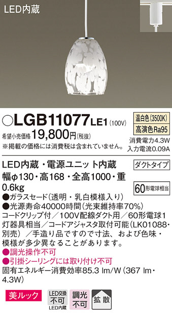 Panasonic ¥Ú¥ó¥À¥ó¥È¥é¥¤¥È LGB11077LE1