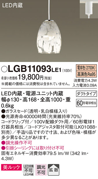 Panasonic ¥Ú¥ó¥À¥ó¥È¥é¥¤¥È LGB11093LE1