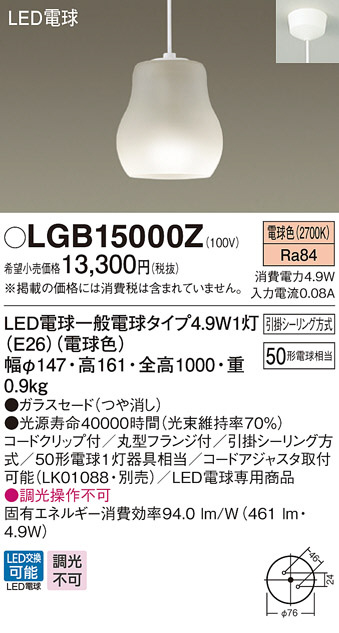Panasonic ¥Ú¥ó¥À¥ó¥È¥é¥¤¥È LGB15000Z