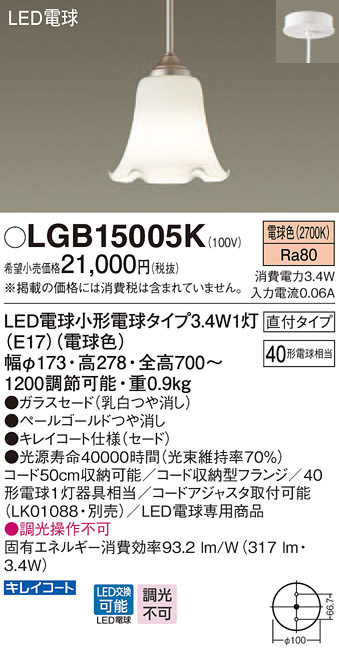 Panasonic LED ¥Ú¥ó¥À¥ó¥È¥é¥¤¥È LGB15005K