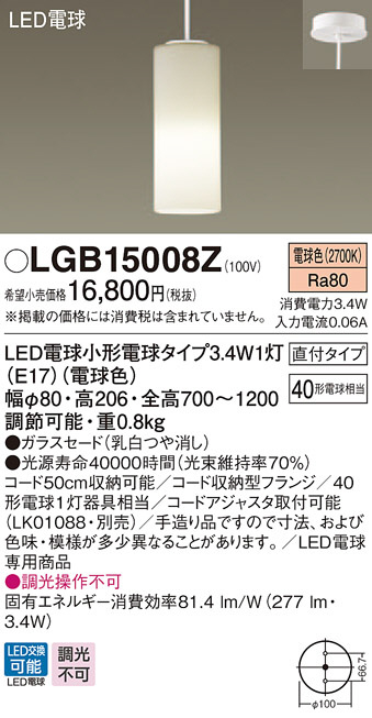 Panasonic LED ¥Ú¥ó¥À¥ó¥È¥é¥¤¥È LGB15008Z