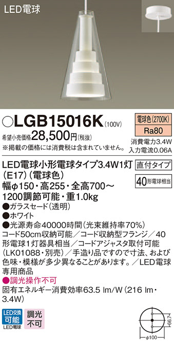 Panasonic LED ¥Ú¥ó¥À¥ó¥È¥é¥¤¥È LGB15016K