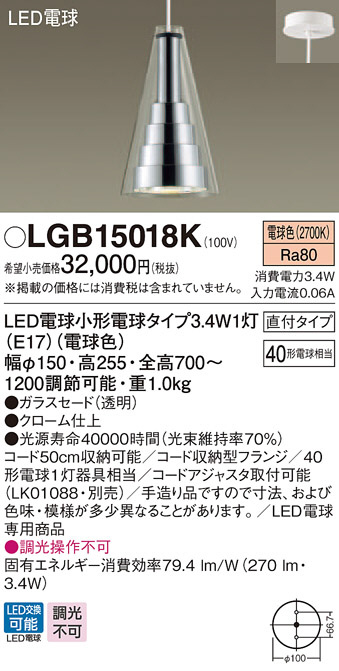 Panasonic LED ¥Ú¥ó¥À¥ó¥È¥é¥¤¥È LGB15018K
