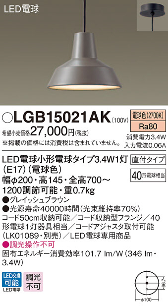 Panasonic LED ¥Ú¥ó¥À¥ó¥È¥é¥¤¥È LGB15021AK