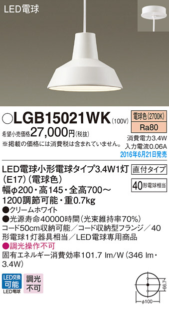 PANASONIC ¥Ñ¥Ê¥½¥Ë¥Ã¥¯ ¥Ú¥ó¥À¥ó¥È¥é¥¤¥È LGB15021WK