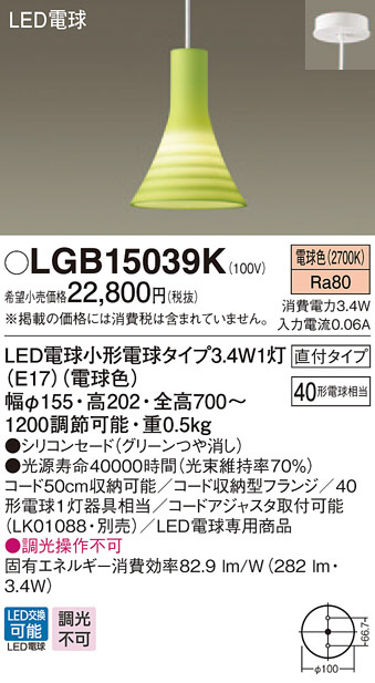 Panasonic LED ¥Ú¥ó¥À¥ó¥È¥é¥¤¥È LGB15039K