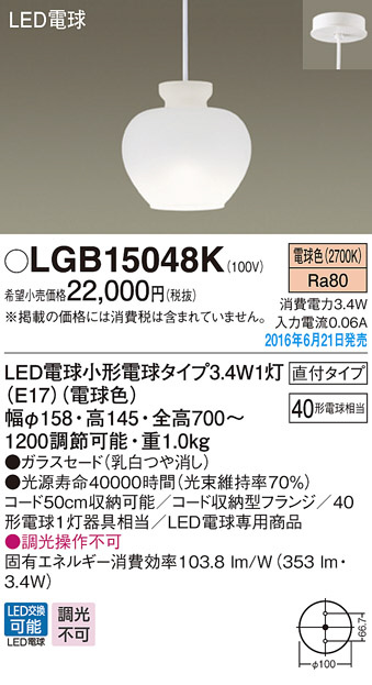 PANASONIC ¥Ñ¥Ê¥½¥Ë¥Ã¥¯ ¥Ú¥ó¥À¥ó¥È¥é¥¤¥È LGB15048K