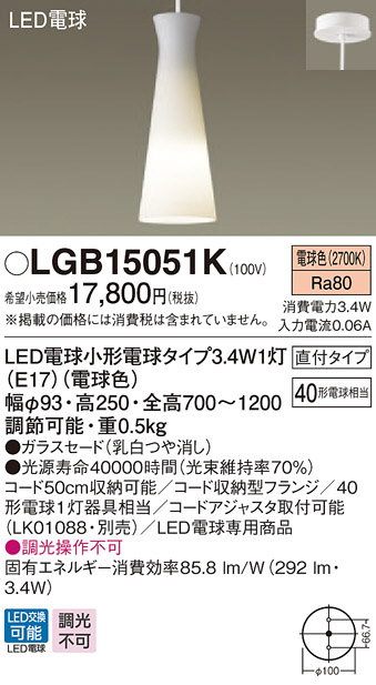 Panasonic LED ¥Ú¥ó¥À¥ó¥È¥é¥¤¥È LGB15051K
