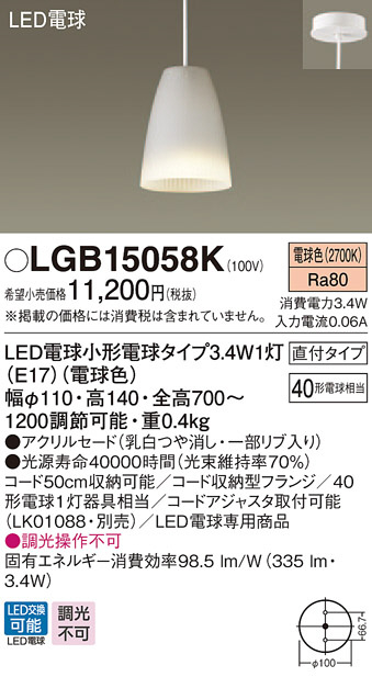 Panasonic LED ¥Ú¥ó¥À¥ó¥È¥é¥¤¥È LGB15058K