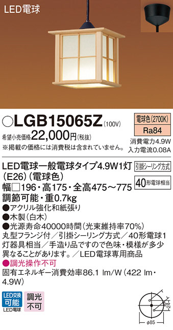 Panasonic LED ¥Ú¥ó¥À¥ó¥È¥é¥¤¥È LGB15065Z