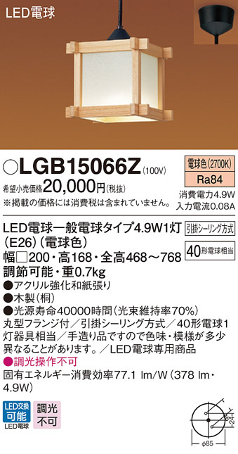 Panasonic LED ¥Ú¥ó¥À¥ó¥È¥é¥¤¥È LGB15066Z