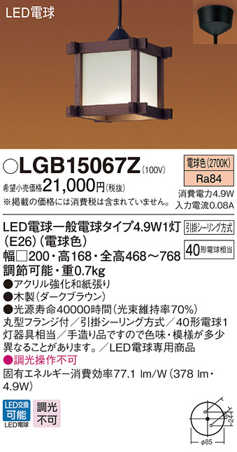 Panasonic LED ¥Ú¥ó¥À¥ó¥È¥é¥¤¥È LGB15067Z