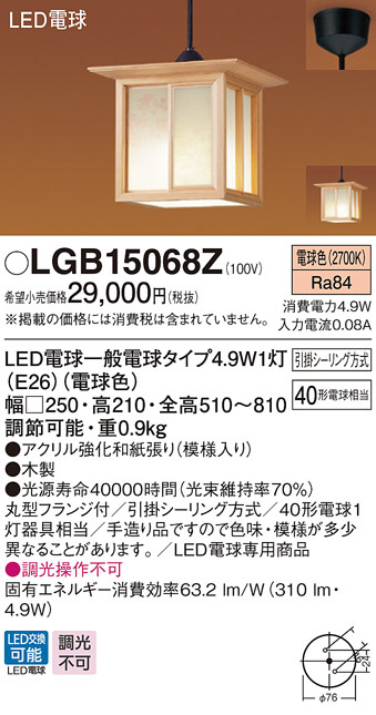 Panasonic LED ¥Ú¥ó¥À¥ó¥È¥é¥¤¥È LGB15068Z