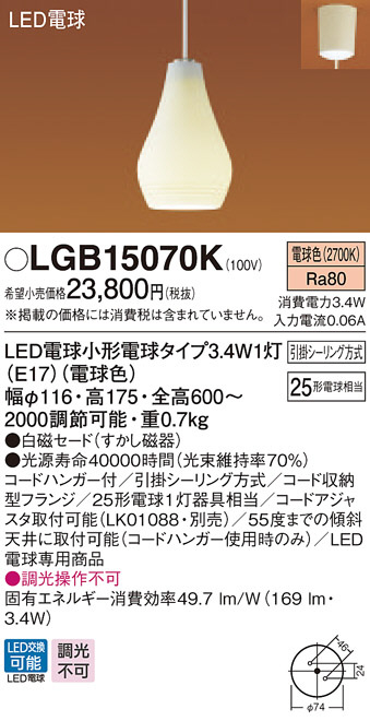 Panasonic LED ¥Ú¥ó¥À¥ó¥È¥é¥¤¥È LGB15070K