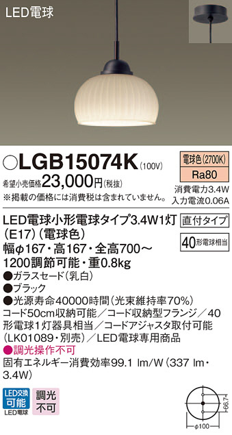 Panasonic LED ¥Ú¥ó¥À¥ó¥È¥é¥¤¥È LGB15074K