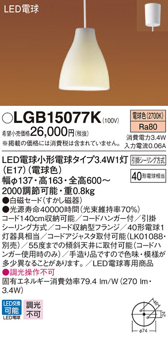 Panasonic LED ¥Ú¥ó¥À¥ó¥È¥é¥¤¥È LGB15077K