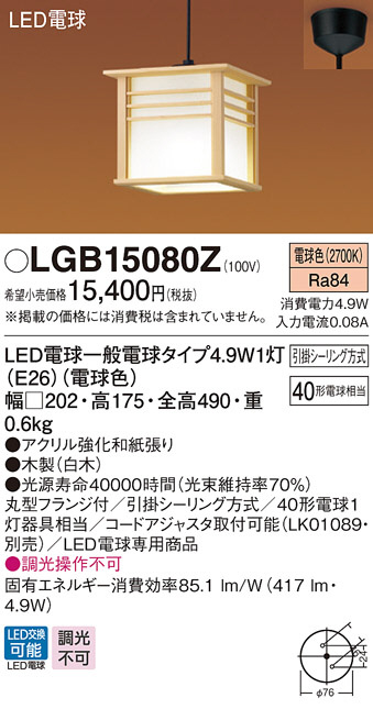 Panasonic LED ¥Ú¥ó¥À¥ó¥È¥é¥¤¥È LGB15080Z