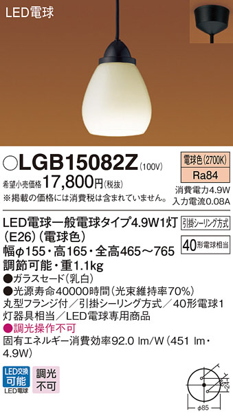 Panasonic ¥Ú¥ó¥À¥ó¥È LGB15082Z