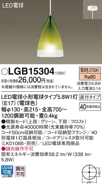 Panasonic LED ¥Ú¥ó¥À¥ó¥È¥é¥¤¥È LGB15304