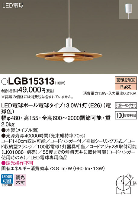 Panasonic LED ¥Ú¥ó¥À¥ó¥È¥é¥¤¥È LGB15313
