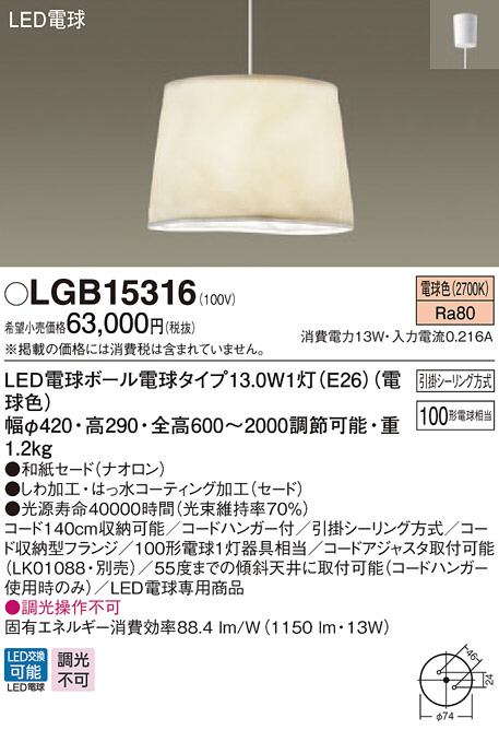 Panasonic LED ¥Ú¥ó¥À¥ó¥È¥é¥¤¥È LGB15316