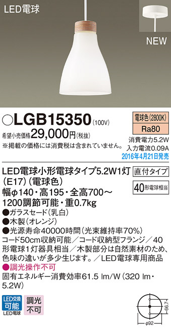 PANASONIC ¥Ñ¥Ê¥½¥Ë¥Ã¥¯ ¥Ú¥ó¥À¥ó¥È¥é¥¤¥È LGB15350