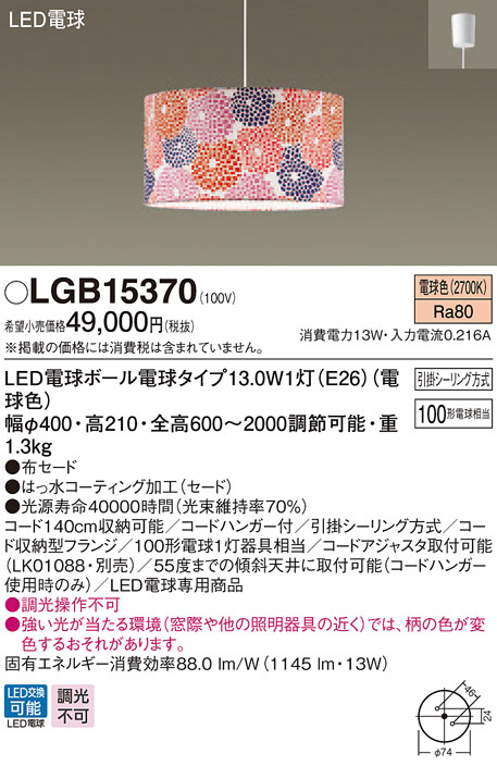 Panasonic LED ¥Ú¥ó¥À¥ó¥È¥é¥¤¥È LGB15370