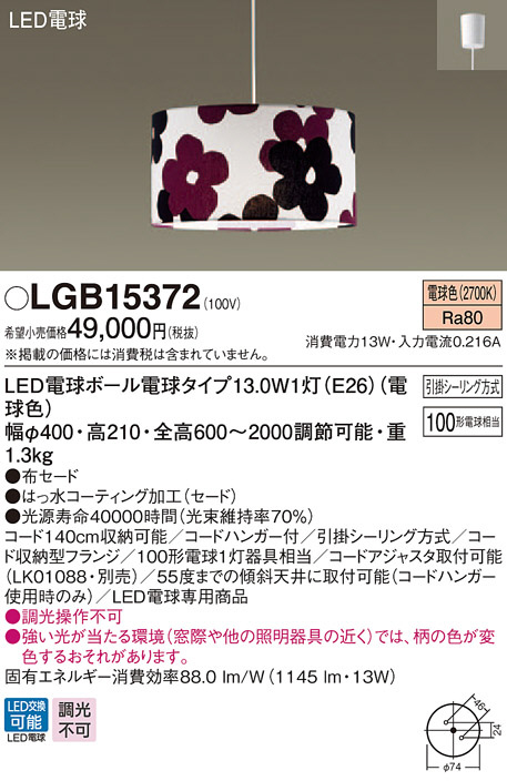 Panasonic LED ¥Ú¥ó¥À¥ó¥È¥é¥¤¥È LGB15372