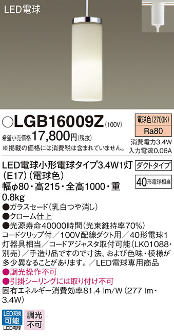 Panasonic LED ¥Ú¥ó¥À¥ó¥È¥é¥¤¥È LGB16009Z