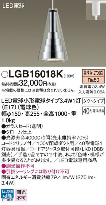 Panasonic LED ¥Ú¥ó¥À¥ó¥È¥é¥¤¥È LGB16018K