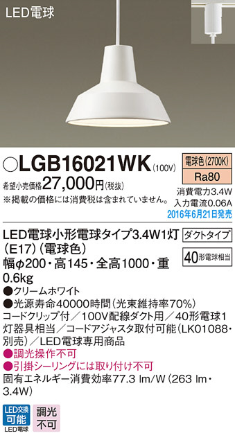 PANASONIC ¥Ñ¥Ê¥½¥Ë¥Ã¥¯ ¥Ú¥ó¥À¥ó¥È¥é¥¤¥È LGB16021WK