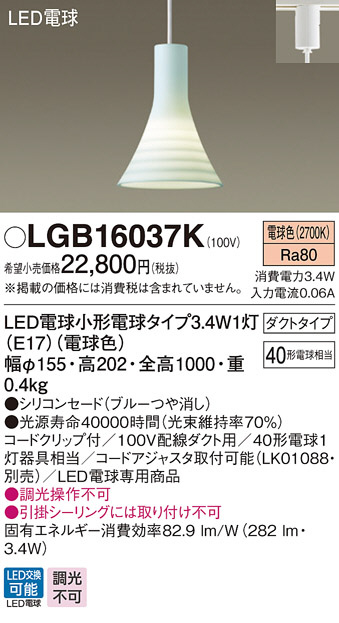 Panasonic LED ¥Ú¥ó¥À¥ó¥È¥é¥¤¥È LGB16037K